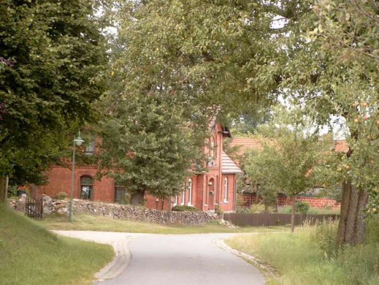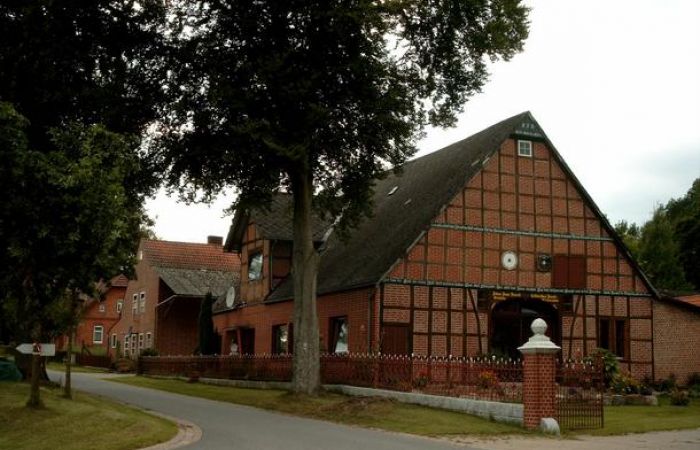 Giebelansicht eines Vierständer-Hallenhauses in der Ortslage.