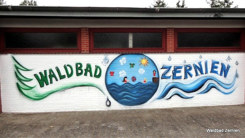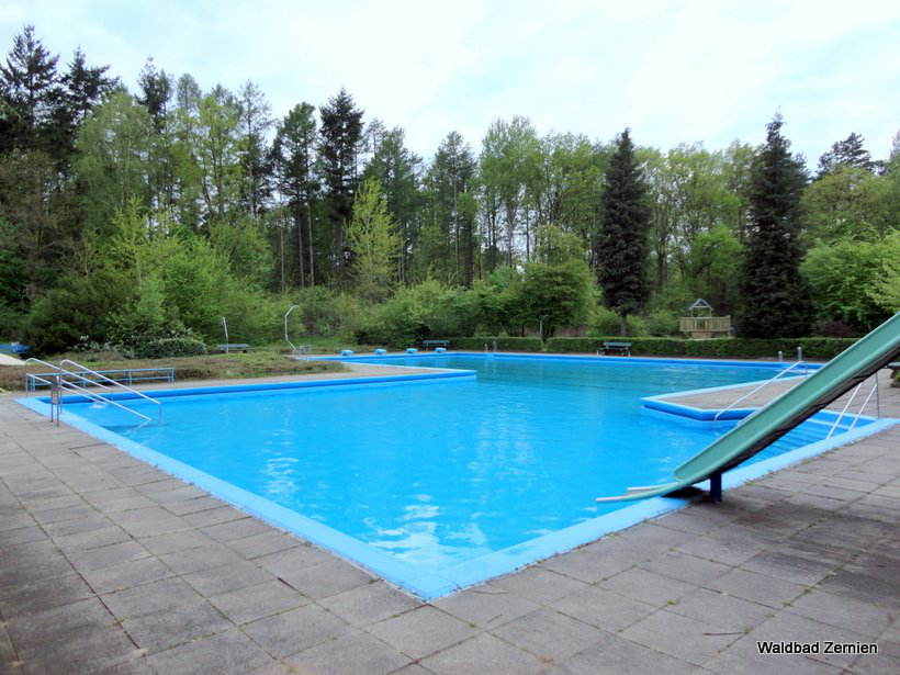 Das Zerniener Waldbad hat ein Sportbecken mit einer Bahnlänge von 25m mit angrenzendem Nichtschwimmerbecken. Das Wasser ist beheizt (ca. 26 Grad). Es gibt einen Eltern-Kind-Bereich mit Baby-Planschbecken und Spielplatz. Auf der großen Liegewiese findet jeder einen schönen Platz. Außerdem befinden sich ein Beachvolleyball- und ein Beachsoccerplatz zur freien Nutzung auf dem Gelände. Benachbart liegt die Tennisanlage des SV Zernien.