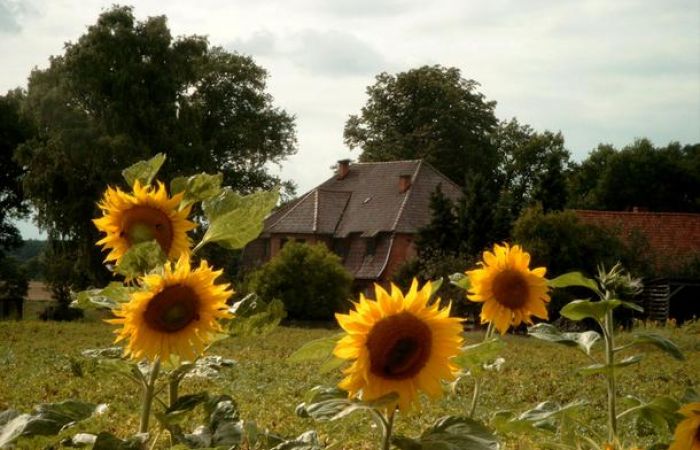 Die Breeser Höfe liegen eingegrünt unter prächtigen Eichen.