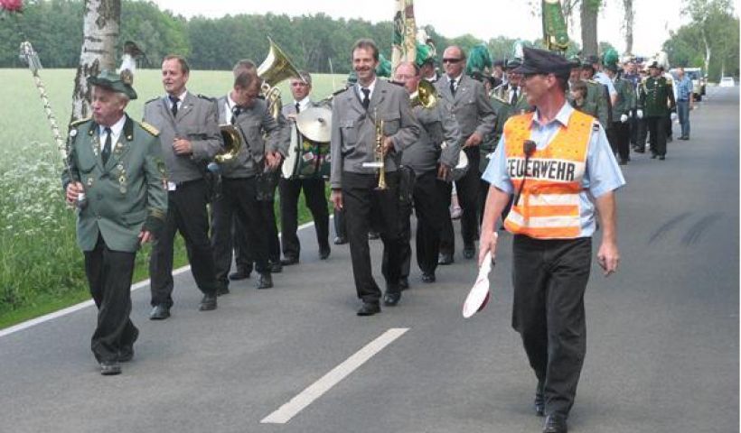 Alljährlicher Umzug beim Pfingstschützenfest in Begleitung der Feuerwehr